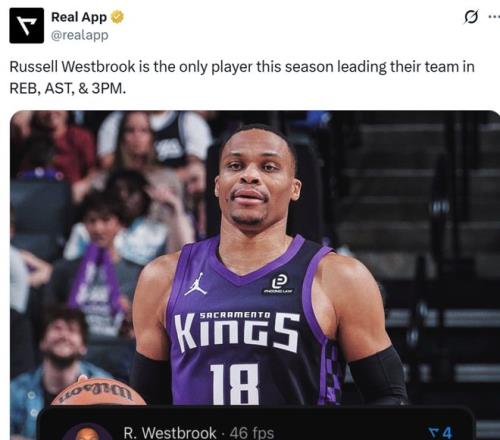 在交出华丽数据的同时,37岁的老威少依旧是能量满满,也用自己的激情将一潭死水的国王队激活。
